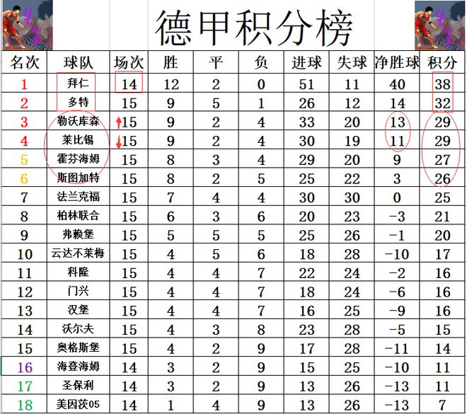 积分榜方面,拜仁少赛一场领先多特6分稳居榜首,莱比锡今天先赢后输,无力超过多特夺回第2的位置,还被逆转赢球拿下争3大战的勒沃库森追上,勒沃库森凭借2个净胜球的优势将莱比锡挤出前3,差榜首的拜仁9分。霍芬海姆和斯图加特打平了,要不莱比锡第4都可能保不住。
